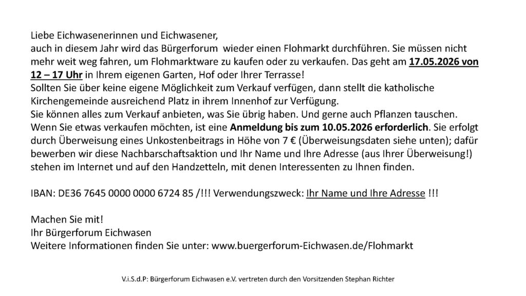 Der Hofflohmarkt im Eichwasen und O’Brien Park wirft schon seine Schatten voraus: